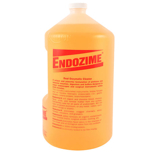 Endozime is a dual enzymatic cleaner that removes blood, protein, mucous, vomit and fecal matter. This formulation of Protease and Amylase enzymes with buffers and surfactants is perfect for all flexible and rigid scopes and instruments. Endozime will solve any problem with clogged channels, sticky biopsy forceps or clouded lenses, leaving both scopes and instruments free of any unpleasant odors and baked-on blood.